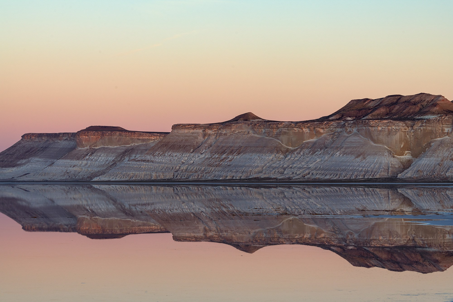 21.04. В этот день у нас сор Тузбаир. Причудливые формы белоснежных меловых склонов и обрывов чинка плато Устюрт в этом месте не могут не поражать. А тонким слоем растёкшаяся по соляному сору вода, создаёт зеркальные картины.