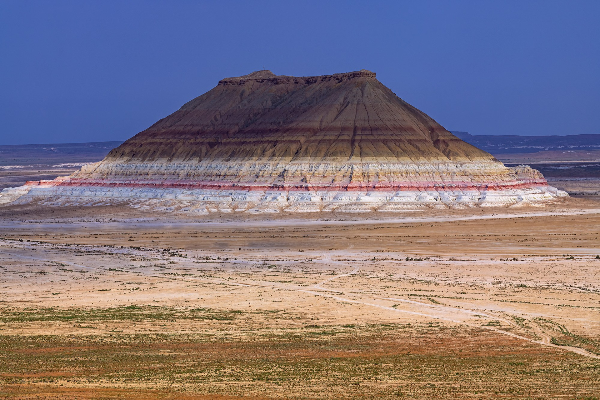 17.04. В этот день мы доедем до урочища Кызылкуп или Тирамису, как ещё называют эти поражающие своими разноцветно-полосатыми склонами и распадками невысокие холмы и обрывы. А также обязательно подъедем к Бокты, отдельно стоящей горке с цветной юбочкой. Ночевать будем в секретном месте, с очень выгодным ракурсом, где обычно никто не останавливается.