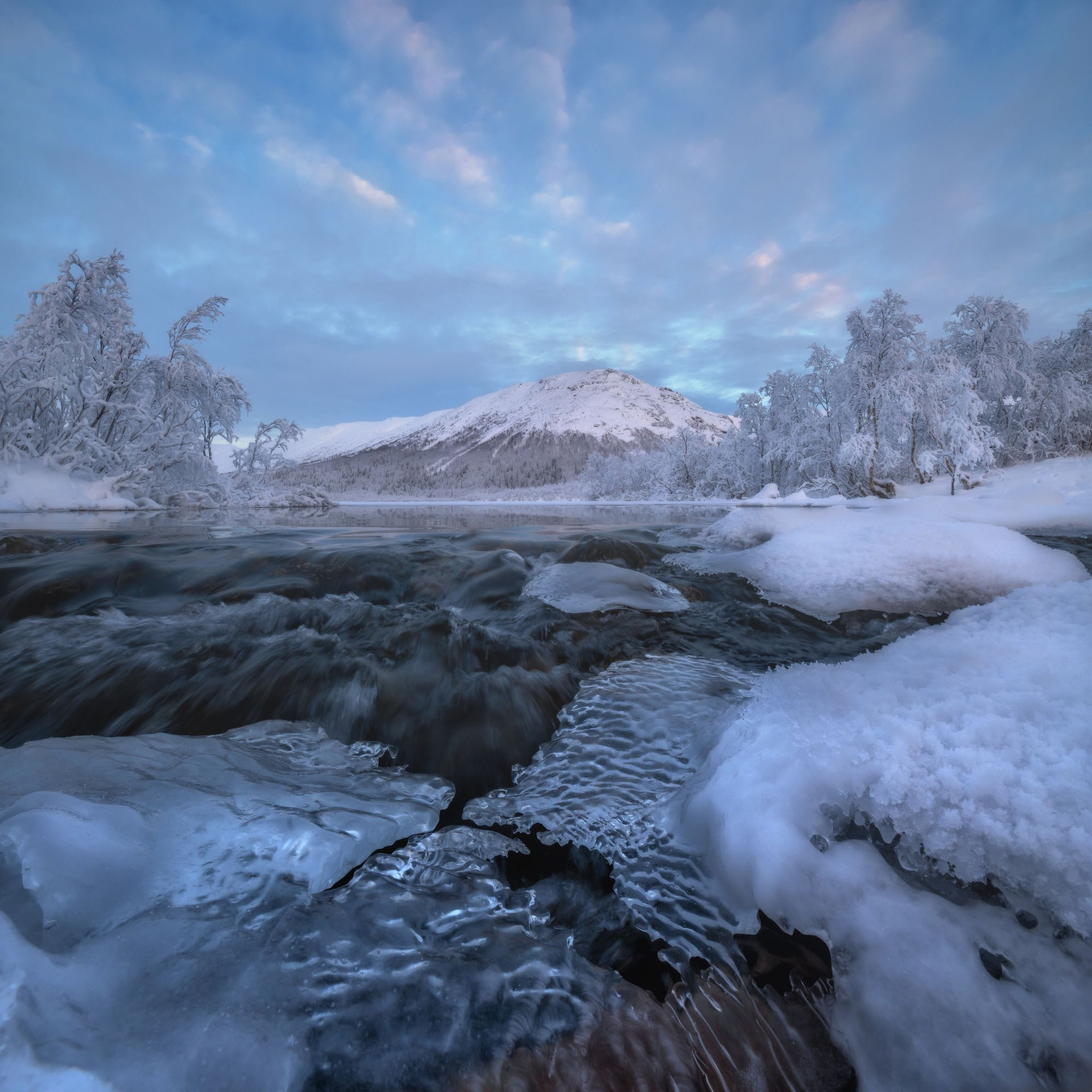 Вечернюю фотосъемку проводим на одной из порожистых рек с наледями в