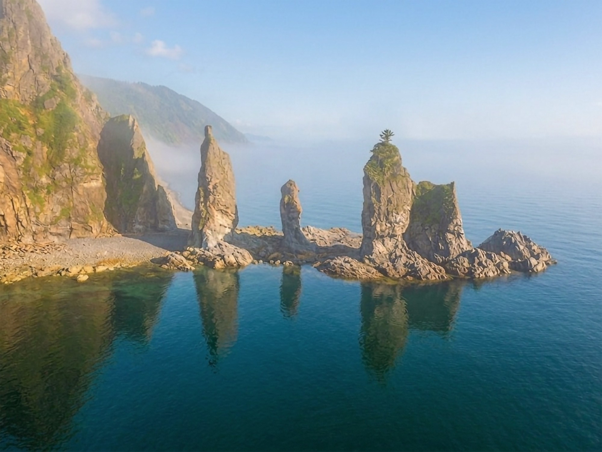 Знаменитые Шантарские острова — это группа островов, которая находится в самой западной части Охотского моря (Хабаровский край). Это самая неприступная и холодная часть Охотского моря, август здесь самый теплый месяц, но температура редко поднимается выше +13°C. Ландшафт Шантарских островов многообразен: от уютных бухт и заливов, до впечатляющих остроконечных скалистых берегов и горных пейзажей (высота гор до 720 метров). На островах встречаются невероятно красивые породы яшмы и мрамора, раскрашивающие побережье разноцветными оттенками. Без сомнений, природные объекты Шантар доставят огромное удовольствие пейзажному фотографу!