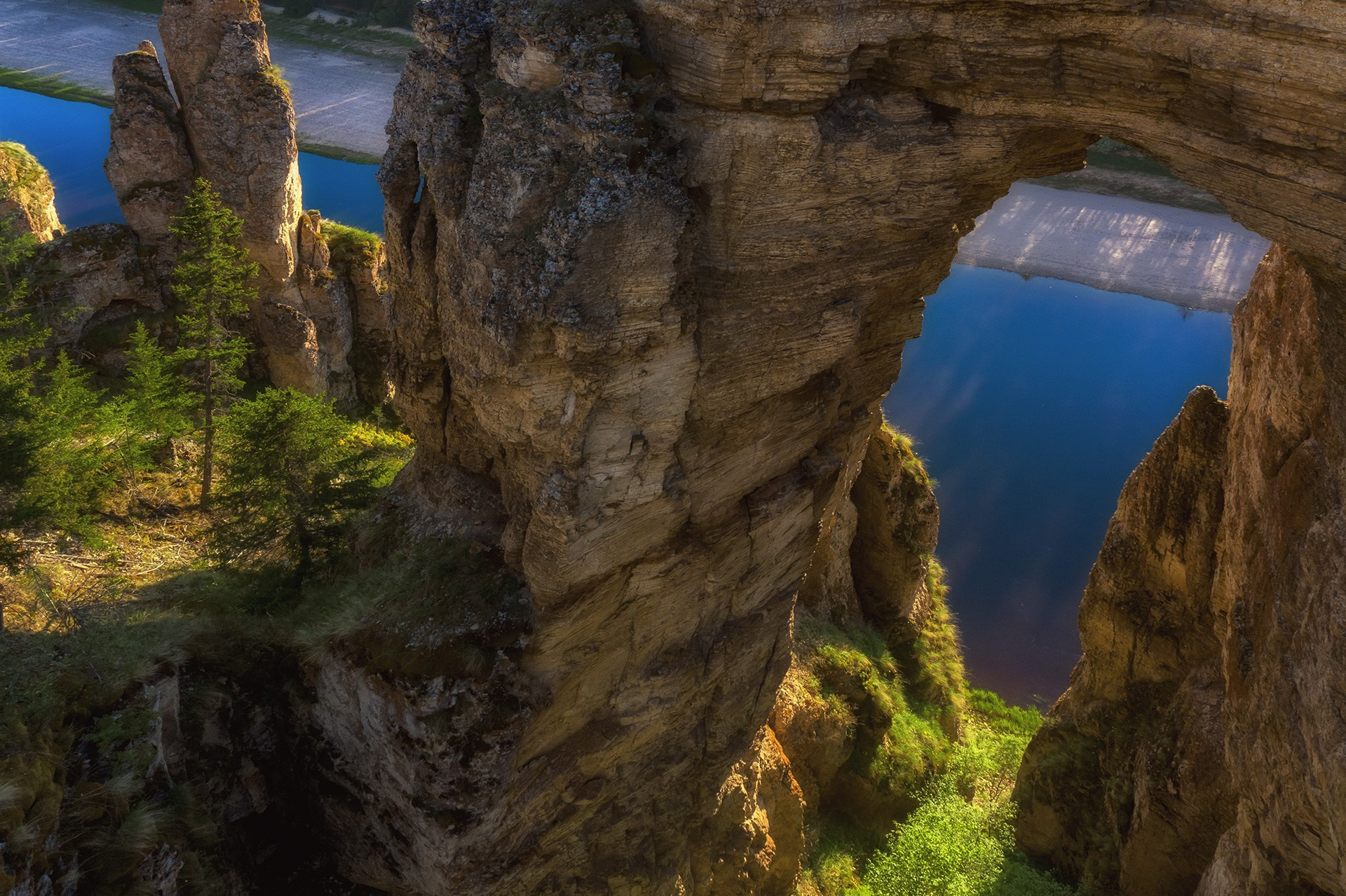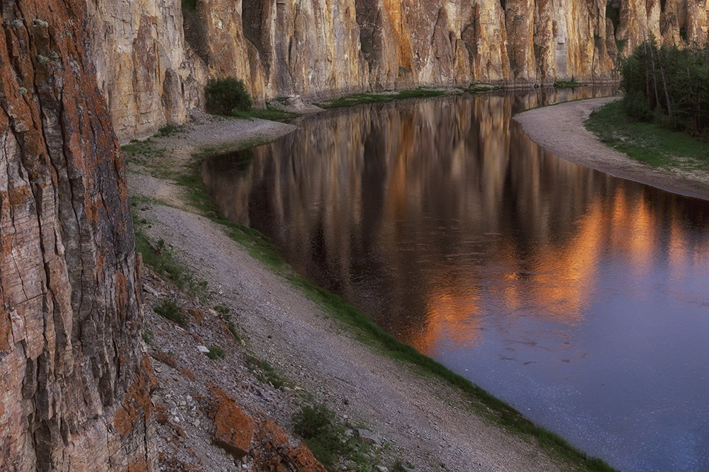 Пожалуй, все кто хоть что-то слышал про Якутию, знают, что там есть алмазы, а ещё Ленские столбы. Но это такие удивительные люди имеются ввиду, которые практически ничего не знают о Якутии. Безусловно, Ленские столбы ландшафтный шедевр и теперь уже самый известный ландшафтный бренд Якутии. Но республика огромная и шедевров в ней не счесть, просто они менее известны. В том числе, есть аналогичные столбы и на других реках. Например, совсем недалеко от Ленских, на реке Сиинэ или Синяя, как её чаще называют. Это левый приток Лены и начало он берёт в Приленском плато, да и всё течение этой реки находится в его пределах. Длина реки около 600 километров, но столбы расположены в нижнем течении.